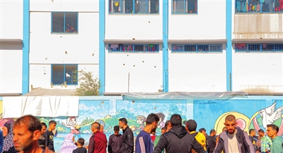 12月3日,加沙地带南部城市汗尤尼斯的一所学校遭以军袭击后墙壁受损。 新华社发
