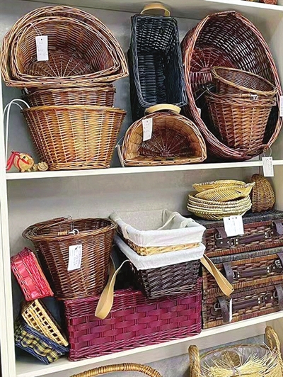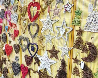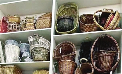 走进杨俊艳公司2楼的一间大厅,四周墙壁旁摆放的木质柜子和展示台上堆满了各种各样的柳编制品:有便于携带的大小柳编篮子,有不同用途的柳编筐,还有造型各异的柳编装饰挂件,品种多达上百个。杨俊艳介绍,这些柳编制品所使用的柳条大部分来自在内蒙古自治区鄂尔多斯市达拉特旗种植的柳树,这些柳树原本是用于防风沙的,由于这种柳树生长周期快、产量大,是柳编制品比较好的一种原材料。