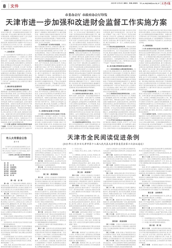 本报讯 近日,市委办公厅、市政府办公厅印发《天津市进一步加强和改进财会监督工作实施方案》,并发出通知,要求各区委、区政府,市委各部委,市级国家机关各部门,各人民团体,结合实际认真贯彻落实。全文如下: