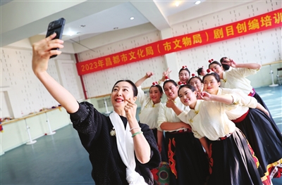本报讯(记者 张帆 摄影 姚文生)热烈奔放、节奏明快的藏族舞蹈《热巴情》,灵动轻盈、惟妙惟肖的傣族舞《孔雀飞来》,姿态婀娜、含蓄委婉的原创舞蹈《那时花开》……昨天,昌都市舞蹈创编培训班结业仪式在天津歌舞剧院举行,天津昌都两地的舞蹈工作者以汇报表演和文艺交流的方式共叙民族情谊。