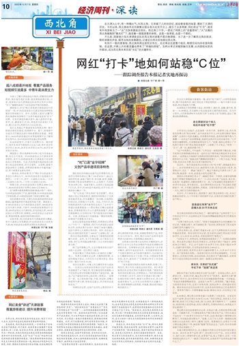随着西北角在社交媒体上走红,网络上也出现了各种各样的“声音”: “排队时间太长”“店里座太少”“冬天户外用餐太冷”“吃不惯”……如何吸纳游客的反馈意见也是非常重要的一环。张毅向记者举例称:“比如在提升产品品质时,可以让外观和口感结合得更好;在门店优化时,可以考虑一些南方游客的需求,提供相关的保障措施。此外,对于就餐环境、排队时间等具体问题,可以由商户和管理者根据自身情况协商调整。”他表示,任何有影响力的地方都会收到消费者的意见和建议,这是正常的,关键是要对各类评价进行理性判断、分析。