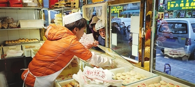 为减少顾客排队时长,沽上德盛中式糕点店将闭店时间设置为18:30。该店有20多个品种,糕干、绿豆糕为主打产品。店长石倩表示,他们4:00上班制作驴打滚、凉果等产品,赶上节假日,店里一天的用面量达数百公斤,“一般到了闭店时间,店里好多产品卖得也就不剩什么了。”