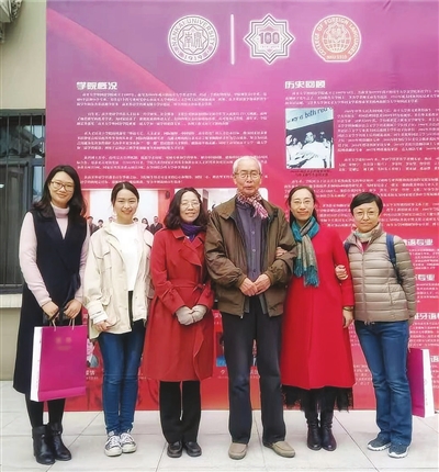 2019年南开大学百年校庆时,刘士聪先生(右三)与校友合影。