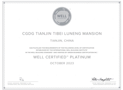 体北鲁能公馆项目荣获天津首个WELL铂金级认证
