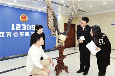 日前,西青区人民检察院与天津自然博物馆举行国家一级保护动物胡兀鹫标本移交仪式。据悉,该标本为西青区人民检察院在办理一起危害珍贵、濒危野生动物案件时没收。 本报记者 孙立伟 摄