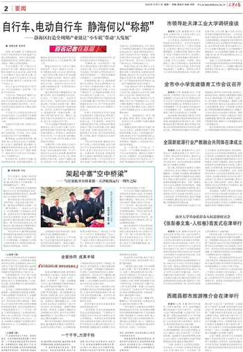 “今年以来,三地党政代表团高频互访,天津分别与北京市、河北省签订新一轮战略合作协议,各区各部门对接走访京冀高达230多次,京津‘1+7’、冀津‘1+6’协议全面落实中,协同发展的纽带越来越牢固、底色越来越靓丽。”市发展改革委副局级领导白向东说。