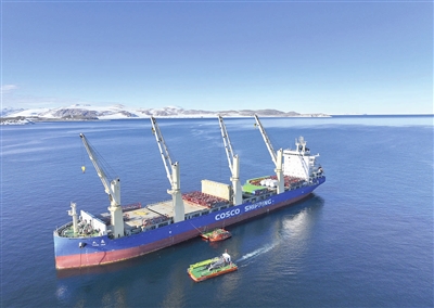 12月8日,“天惠”轮在卸载建站物资(无人机照片)。