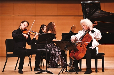 本报讯(记者 张帆 摄影 姚文生)昨天,大提琴家米沙·麦斯基携自己的一双音乐家儿女,以“麦斯基三重奏”的形式在天津大剧院献上克拉拉·舒曼、勃拉姆斯、拉赫玛尼诺夫与肖斯塔科维奇的作品。