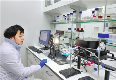 南开大学电子信息与光学工程学院教授罗景山团队成员在进行水分解制氢研究。 本报记者 姜宝成 摄