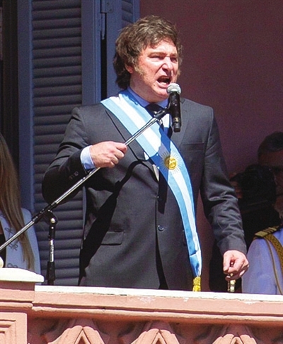 图为阿根廷新总统米莱宣誓就职。新华社发