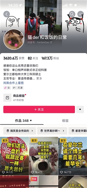 她的抖音号:猫der和饭饭的日常。咱们学网友、粉丝,称她“饭饭”吧。