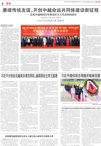 新华社河内12月13日电(记者 温馨 汤沛沛)当地时间12月13日上午,国家主席习近平夫人彭丽媛在越南国家主席武文赏夫人潘氏清心陪同下参观河内国家大学。