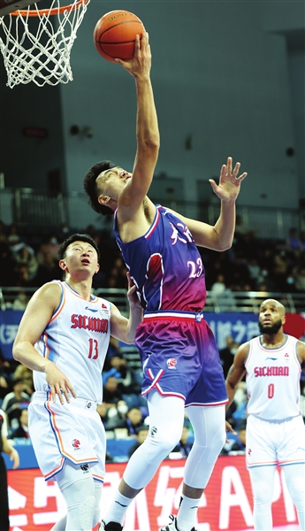本报讯(记者 李蓓 摄影 赵建伟)昨天,2023—2024赛季CBA常规赛继续进行,天津荣钢先行者男篮主场迎战四川队,罗切斯特和林庭谦双双回归,帮助球队以121:103大获全胜,拿到赛季第6场胜利。“我们今天在细节处理上还是差一点,接下来的三个客场才是真正的考验。”赛后,天津队主教练张庆鹏说。