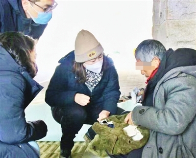 本报讯(记者 王音)“大爷,外面太冷了,跟我们进站暖和暖和吧!”连日来,西青区救助管理站工作人员走访大街小巷,巡查流浪乞讨和临时遇困人员。在某小区门前的一处角落,工作人员发现了在简易帐篷中的一位老人。经过几番沟通,老人跟随工作人员来到救助管理站,暂时安顿了下来。