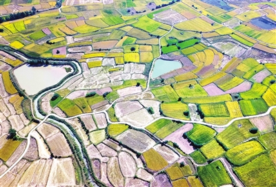 安徽省凤阳县小岗村的田野景象(2018年9月27日摄,无人机照片)。 新华社发
