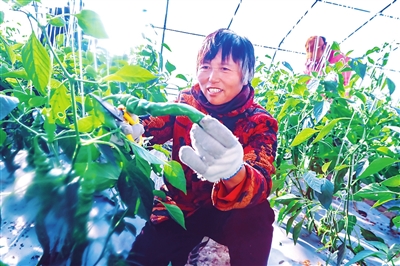 位于西青区精武镇的设施蔬菜生产基地120余亩螺丝椒喜获丰收,丰富了寒潮下京津两地“菜篮子”。 本报记者 潘立峰 通讯员 王鑫 摄