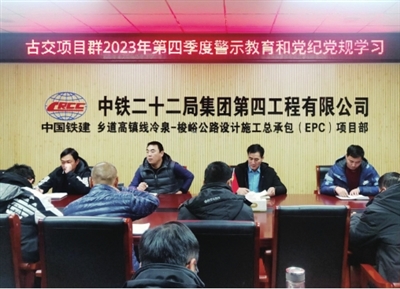 近日,中铁二十二局四公司古交项目群组织开展2023年第四季度警示教育系列活动,通过集中学习文件、观看警示教育短片等形式,引导领导干部坚守理想信念高线,不碰纪律规矩红线。近年来,该公司以创建天津市文明单位为契机,通过举办廉洁书画展、拍摄廉洁短视频等形式,在全公司播种“廉洁种子”,使廉洁理念深入人心。(于泽 焦成英)
