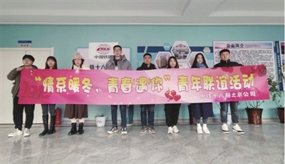 为帮助广大单身青年职工扩大交友范围、拓宽沟通渠道、搭建交流平台,中铁十八局北京公司山西工程管理部日前组织开展“情系暖冬,青春‘遇’你”青年联谊活动。此次活动让广大单身适龄青年们增进了交流、拉近了距离,取得了良好的效果。 (高伟军)