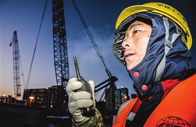 中铁十八局建设者在我市在建最深地铁站——下瓦房站冒着严寒指挥吊装,确保工程如期完工。