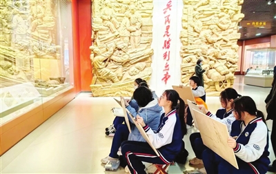日前,河北工业大学附属实验学校高中近百名师生,走进平津战役纪念馆,用手中画笔画出自己心目中的英雄。