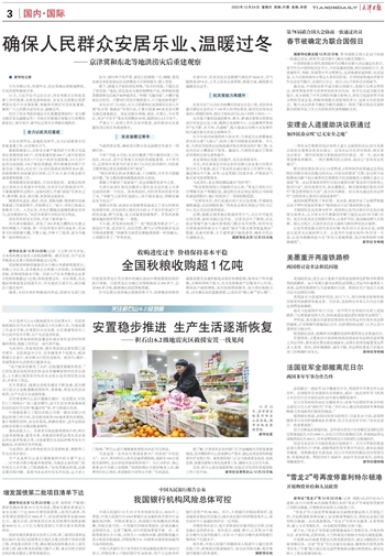 从东北到华北,各地抢先抓早,全力以赴推进灾后恢复重建工作,应对寒冷天气。
