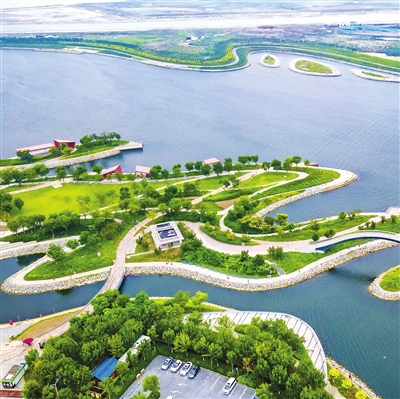 图为 中新生态城南湾公园。