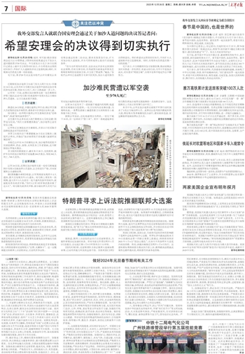 毛宁说,第2720号决议是本轮巴以冲突爆发以来安理会通过的第二份决议,要求采取紧急行动,扩大对加沙的人道援助,并为可持续地停止敌对行动创造条件。