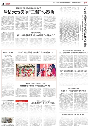 本报讯(记者 张璐)昨日,新华社推出通讯《科技创新 产业焕新 城市更新——津沽大地奏响“三新”协奏曲》,报道我市作为科技、教育、人才实力雄厚的超大城市,正以科技创新赋能产业焕新,以产业焕新促进经济提质,以城市更新加快有机循环,进一步盘活存量、培育增量、提升质量,奏响了加快形成新质生产力的协奏曲。