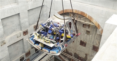 “京滨协同号”盾构机盾体吊装。 图片由中铁十四局京滨铁路五标项目提供