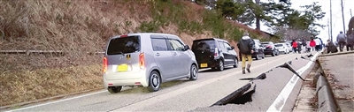 图为在日本石川县轮岛市河井町拍摄的受损道路。 新华社发