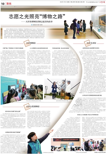 2023年3月,天津大学外国语学院2020级本科生曹渝琛成为天津美术馆的志愿者,负责讲解“中小学博物馆示范课”《一个两万五千里的奇迹》《中国古代桥梁建筑之美》。她说:“我以后想当老师,做志愿者讲‘中小学博物馆示范课’,对于我来说,是非常适宜的锻炼机会。”