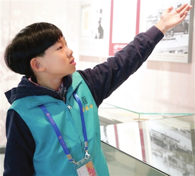 作为新上任的小小志愿者,董懿航选择的第一个展厅是“中华百年看天津”,主要讲述天津在中国百年近代史背景下的发展历程,董懿航通过“童言童语”把一部活的天津近代史呈现给参观者。