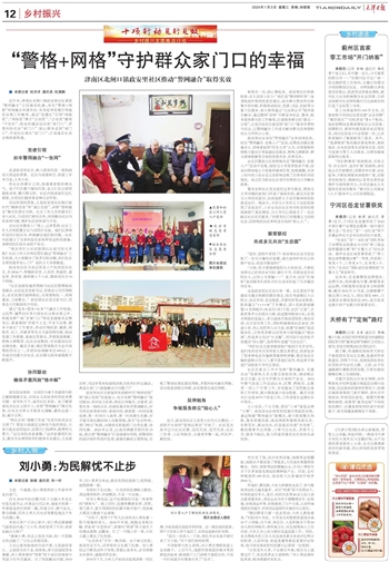 近年来,津南区北闸口镇政安里社区紧抓“警网融合”示范建设机遇,深化“警格+网格”双网融合共建共治,有效延伸党建引领基层治理工作触角,通过“党建红”引领“网格蓝”,“网格蓝”携手“公安蓝”,“公安蓝”擦亮“平安色”,推动共建活动办在“家门口”、矛盾纠纷化在“家门口”、贴心服务送到“家门口”、平安社区建在“家门口”,打造基层社会治理的新阵地。