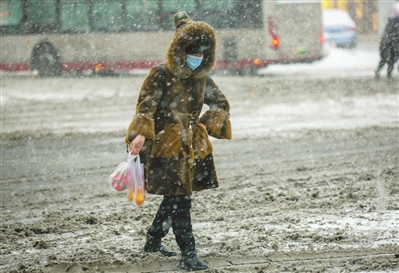 12月,最强寒潮来袭!广开四马路与黄河道交口,一位市民冒雪前行。