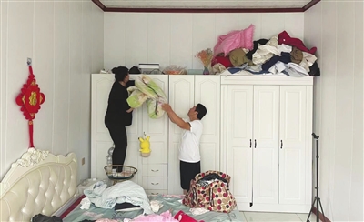 8月3日,洪水来临前,台头镇居民将生活用品放在柜子上以防被洪水浸泡。
