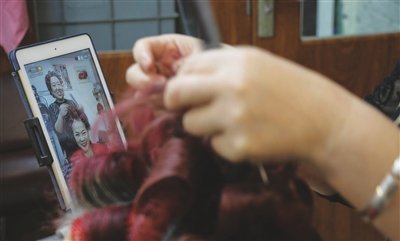 1月,因“天津盘头大姨”走红网络的美发师朱姐,在自己的小店里边直播,边为顾客盘发,准备迎接春节。