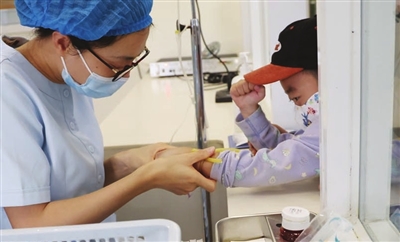 入冬以来,多种病毒感染叠加。人民医院儿科内小患者紧握拳头为自己鼓劲。