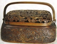 “小寒已近手难舒,终日掩门深闭庐。”说的是小寒时节,手冷得难以舒展,整日关门躲在家里。古人冬季取暖用的手炉是文人雅士几案上常备的用具。手炉的制作工艺,在明清时期达到顶峰。天博馆藏清代仿铜胡文明款鎏金手炉,铜有鎏金,体方圆而扁,腰部雕刻“海水江牙”纹饰等,盖上有龙云镂空及二提梁。