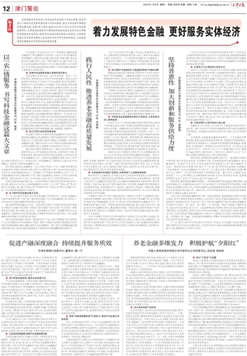 为贯彻落实中央经济工作会议和中央金融工作会议部署,落实市委十二届四次全会暨市委经济工作会议精神,坚定不移走好中国特色金融发展之路,本报《津门策论》版继2023年12月25日刊发中央金融驻津单位、天津金融机构负责人围绕做好金融五篇大文章以及天津特色金融撰写的文章后,持续关注金融创新发展的天津实践,以期更好地满足实体经济发展和人民美好生活对多样化金融的需求,以金融高质量发展服务全市经济社会高质量发展。