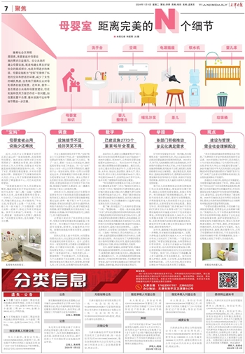 “我市将提升母婴服务水平纳入《天津市卫生健康事业发展‘十四五’规划》《天津市人口发展‘十四五’规划》和《天津市推进儿童友好城市建设实施方案》,纳入健康天津行动和母乳喂养促进行动之中。多部门联合制定加强母婴设施建设的实施意见,协同发力推动母婴设施建设。”市卫生健康委人口监测与家庭发展处负责人告诉记者。