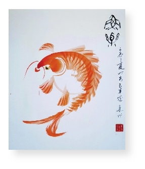 中国画自古讲究“骨法用笔”,线在国画中的重要性是不言而喻的。华非先生由书法入画,披离点画皆以书家笔法出之,这使其画面上的线条,往往具有独立的审美价值。这种特点,在其画作《秋酣》《墨荷》《双凫》中,都有体现。华非的陶艺创作,尤其是非刻瓷类的作品,大多注重釉彩的窑变,其釉色的自然渗透、浸染、融汇,往往造成意外的视觉效果。因此,画面上总是五彩缤纷的。而他的国画作品却极大地淡化了色彩的功能,扫去粉黛留墨韵,顿使清气拂面来。即使略施淡彩的作品,也是尽量使色彩单纯化,只用朱砂花青赭石诸色以水墨化之,从而让墨线凸现出来。不过,他的绘画显然也从陶艺中汲取了不少营养。譬如陶艺的装饰性特色,在其国画作品中,依然隐约可见。他好像很喜欢画“圆光”,如《双鲤图》《双凫图》都采用了“圆光”的形式,且都有较强的装饰性。这,恐怕与画家长期从事圆形瓷盘的创作,也不无关系吧。