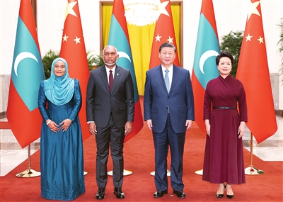 穆伊兹表示,我非常荣幸携多位重要内阁部长对中国进行首次国事访问,成为今年中方接待的首位外国元首,这充分体现了我们双方对发展马中关系的高度重视。马方坚定奉行一个中国政策。