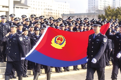 昨日,公安南开分局组织120名青年民警来到周邓纪念馆,面向警旗、举起右拳,重温入警誓词。 本报记者 胡凌云 通讯员 石乔 王英浩 摄