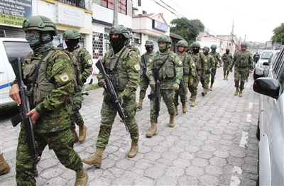 1月9日,厄瓜多尔军方人员在首都基多巡逻。 新华社发