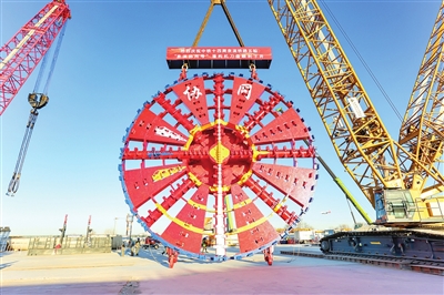 昨日,在一台450吨主吊机及一台400吨辅吊机的密切配合下,重达300吨的京滨铁路“京滨协同号”盾构机刀盘被准确吊运至预定安装位置,这标志着天津机场2号隧道具备盾构始发条件。