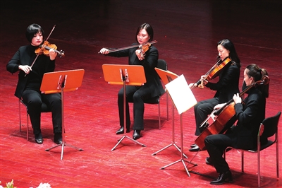 此次演出由天津交响乐团“爱·悦四重奏”带来,该组合由女演奏家组成,曾多次代表天津交响乐团出访海外,并在国内举办了百余场重奏音乐会。音乐会上,演奏家演奏了《新春乐》《情深谊长》《彩云追月》《菊花台》《幽默曲》《卡农》《查尔达什》等中外名曲。