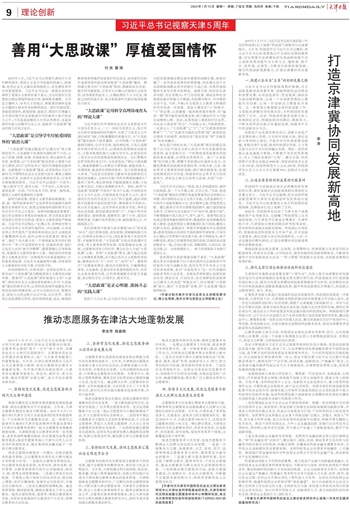 2019年1月17日,习近平总书记在视察天津市和平区新兴街朝阳里社区志愿服务时强调,志愿者事业要同“两个一百年”奋斗目标、同建设社会主义现代化国家同行。志愿服务是社会文明进步的重要标志,是广大志愿者奉献爱心的重要渠道。五年来,天津认真贯彻落实习近平总书记重要指示精神,推动志愿服务在津沽大地蓬勃发展。在中国式现代化新征程中,天津坚持志愿服务制度化、常态化、组织化、多元化发展,建设学雷锋“志愿之城”,奋力开创志愿服务新局面。