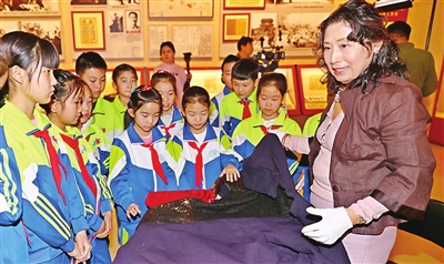 学生们聆听革命先辈的英雄事迹。 本报记者 姚文生 摄