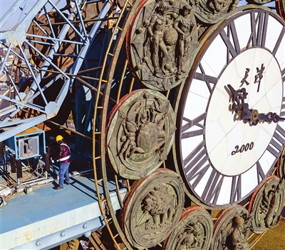 “前几天,我看到有位游客在这儿游览时特意拿出倒计时器,对比判断世纪钟走时是否准确。”肖军峰说,“这一点大家不用担心。世纪钟最初建设时采用了GPS(全球定位系统)进行定位授时。在此次修复中,我们进一步提升了世纪钟的整体功能,增加了国产的北斗卫星导航授时系统,实现双星授时,走时精准更有保障。”