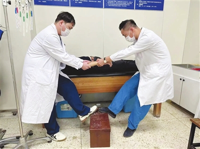 医生们在为骨伤患者治疗。 照片由天津医院提供